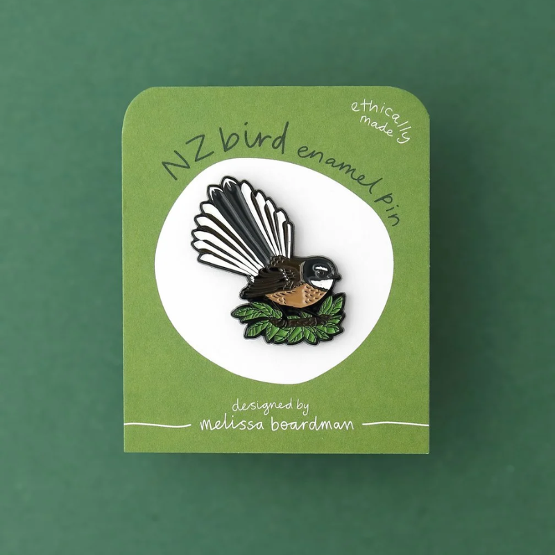 Original pin designs from Aotearoa creative Melissa Boardman featuring native birds.